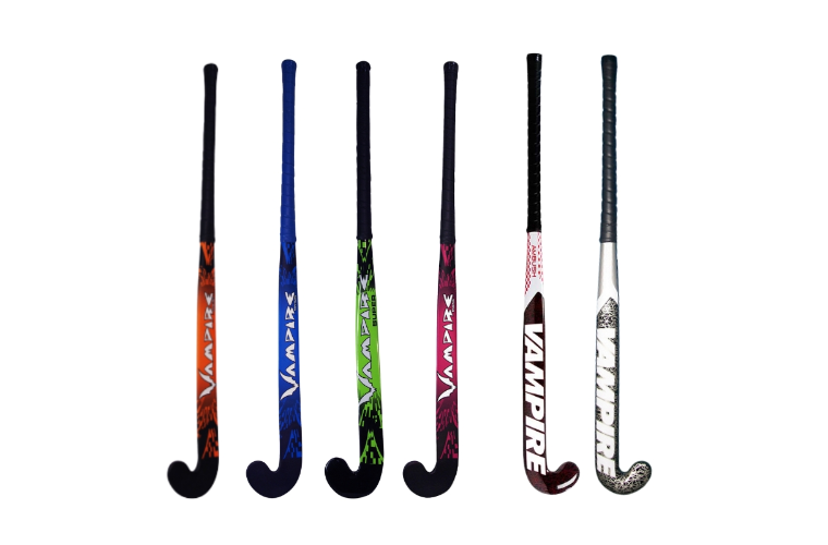 A range of Vampire Composite Hockey Sticks available in a range of sizes, colours and shapes.