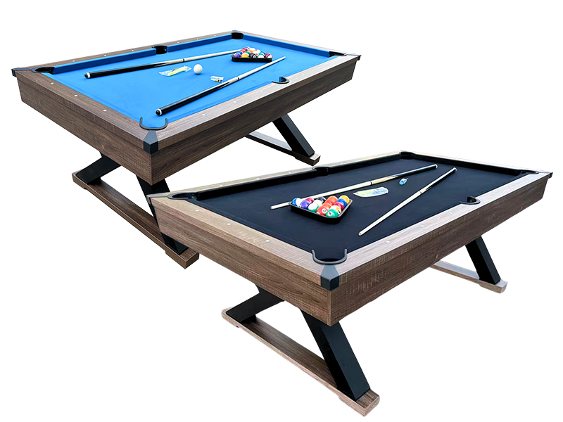 Featuring a blue or black felt cloth playing field and a stylish wood grain finish, this table easily converts into a dining room table with its MDF wood grain table top.