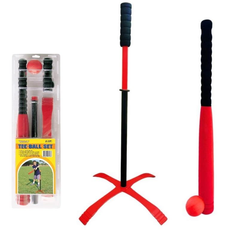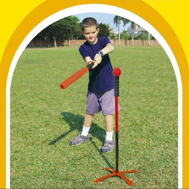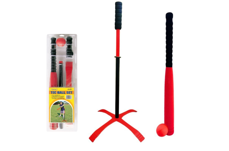 Featuring a 24" (61cm) foam bat, ball, and a sturdy plastic batting tee that’s both height adjustable and easy to assemble.