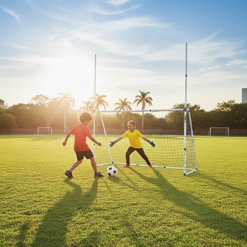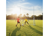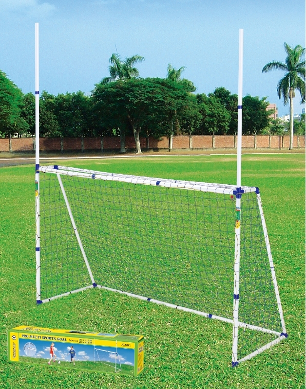 This professional-style goal features a rectangular top with extended poles for versatile play, perfect for soccer, rugby, and more.