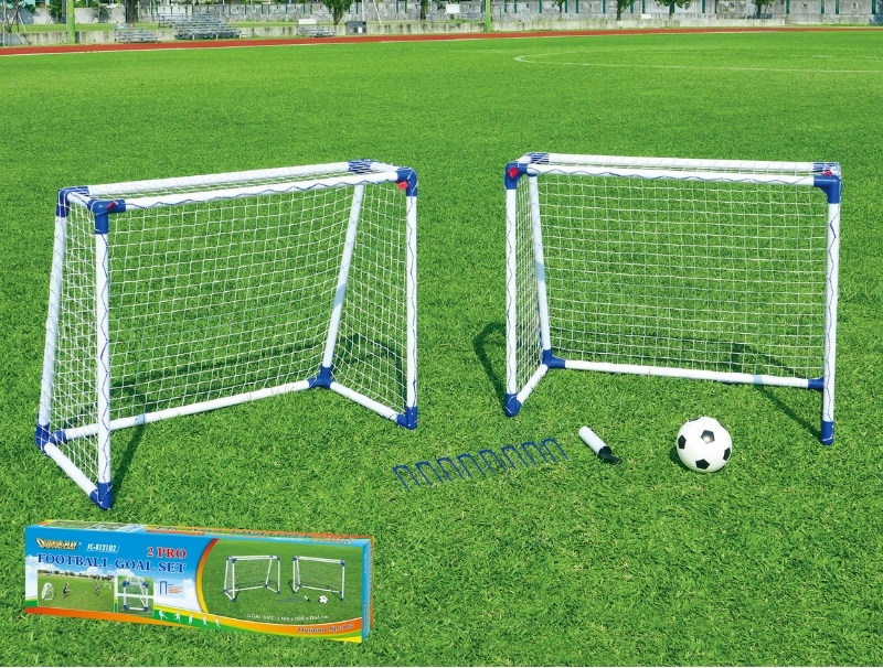 The set includes 2 goals, 1 soccer ball, 1 pump, and 8 net pegs - everything you need for fast, easy setup and hours of backyard soccer action!