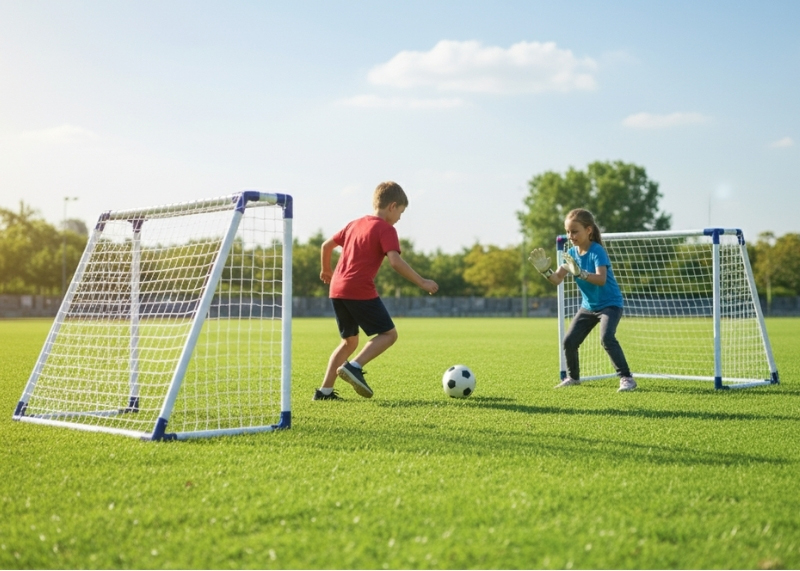 This PVC goal set features a rectangular top and spacious design, giving players plenty of room to move and score. Durable yet lightweight, the goals are built with high-impact ABS joints for lasting performance.